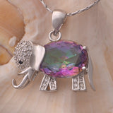 Rainbow Color Elephant Pendant - Sterling Silver